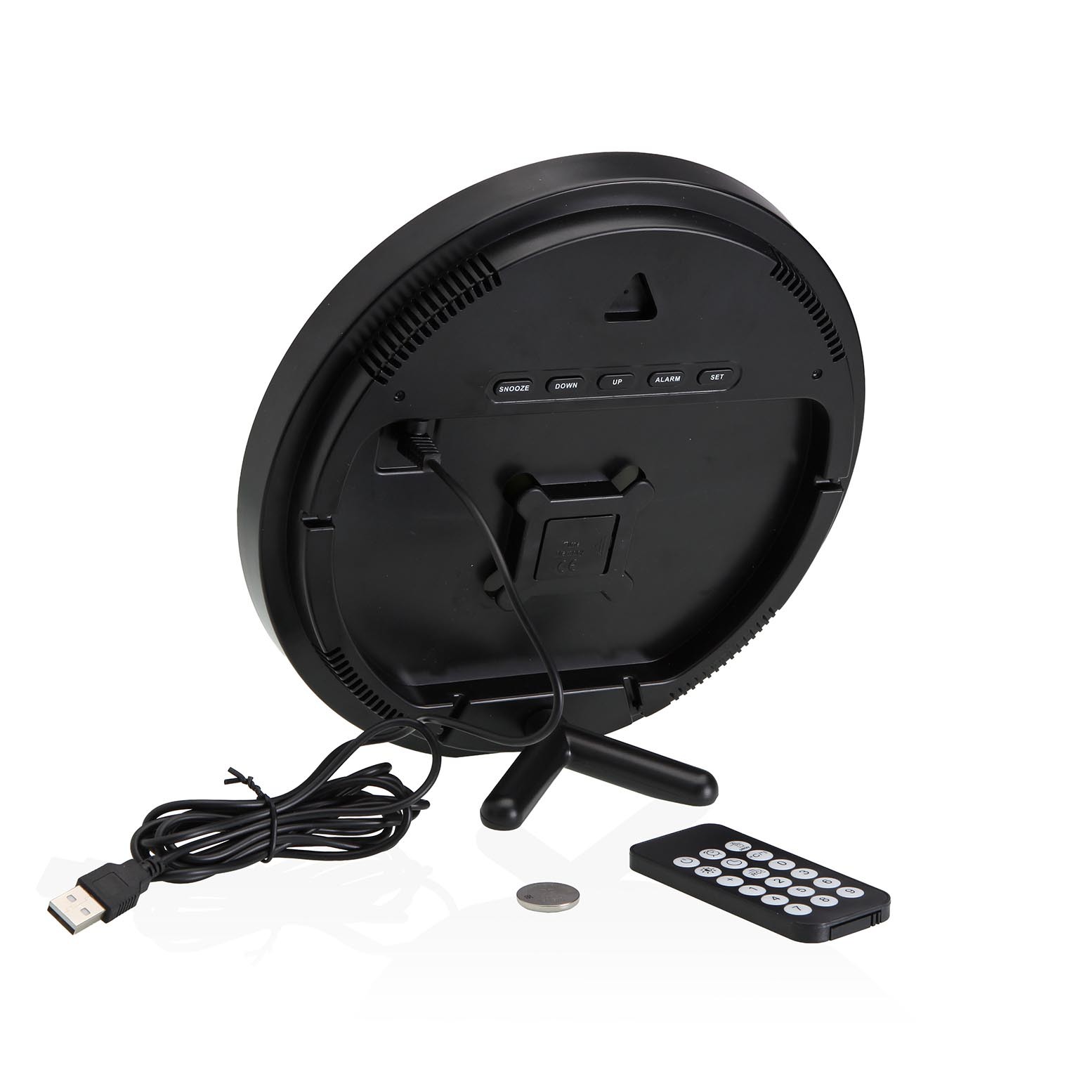 El reloj de pared digital con mando negro es un accesorio funcional y moderno, ideal para cocinas y espacios de trabajo.