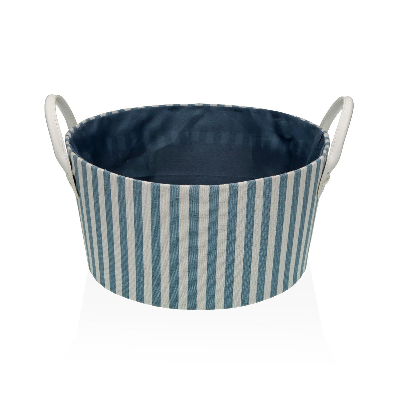 La cesta redonda rayas azul es un cesto de ropa funcional y versátil, ideal para el baño, dormitorio o áreas de lavandería.