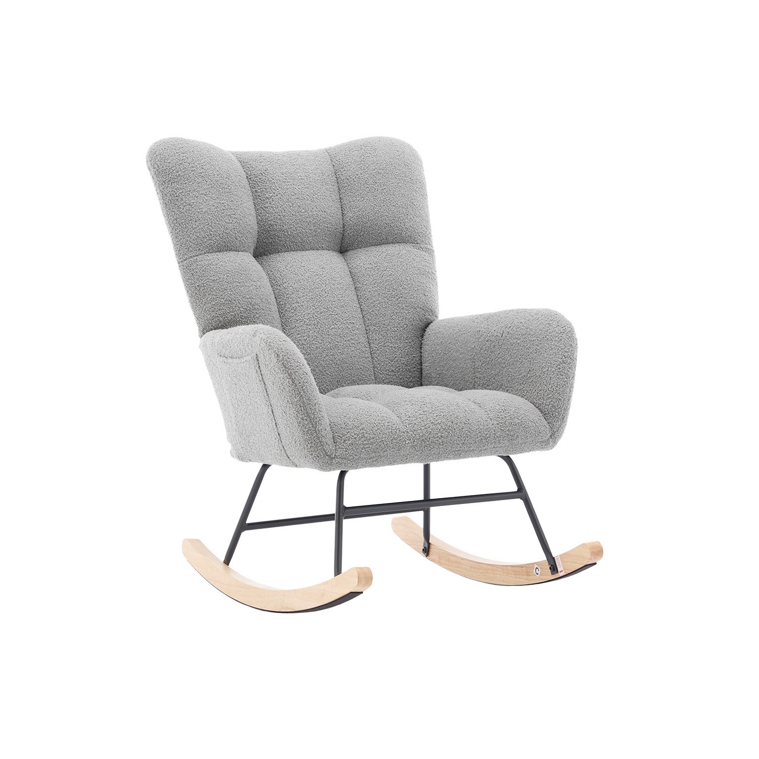 La mecedora con reposabrazos gris es una pieza clave en la categoría de muebles auxiliares, diseñada para aportar confort y estilo a cualquier espacio.