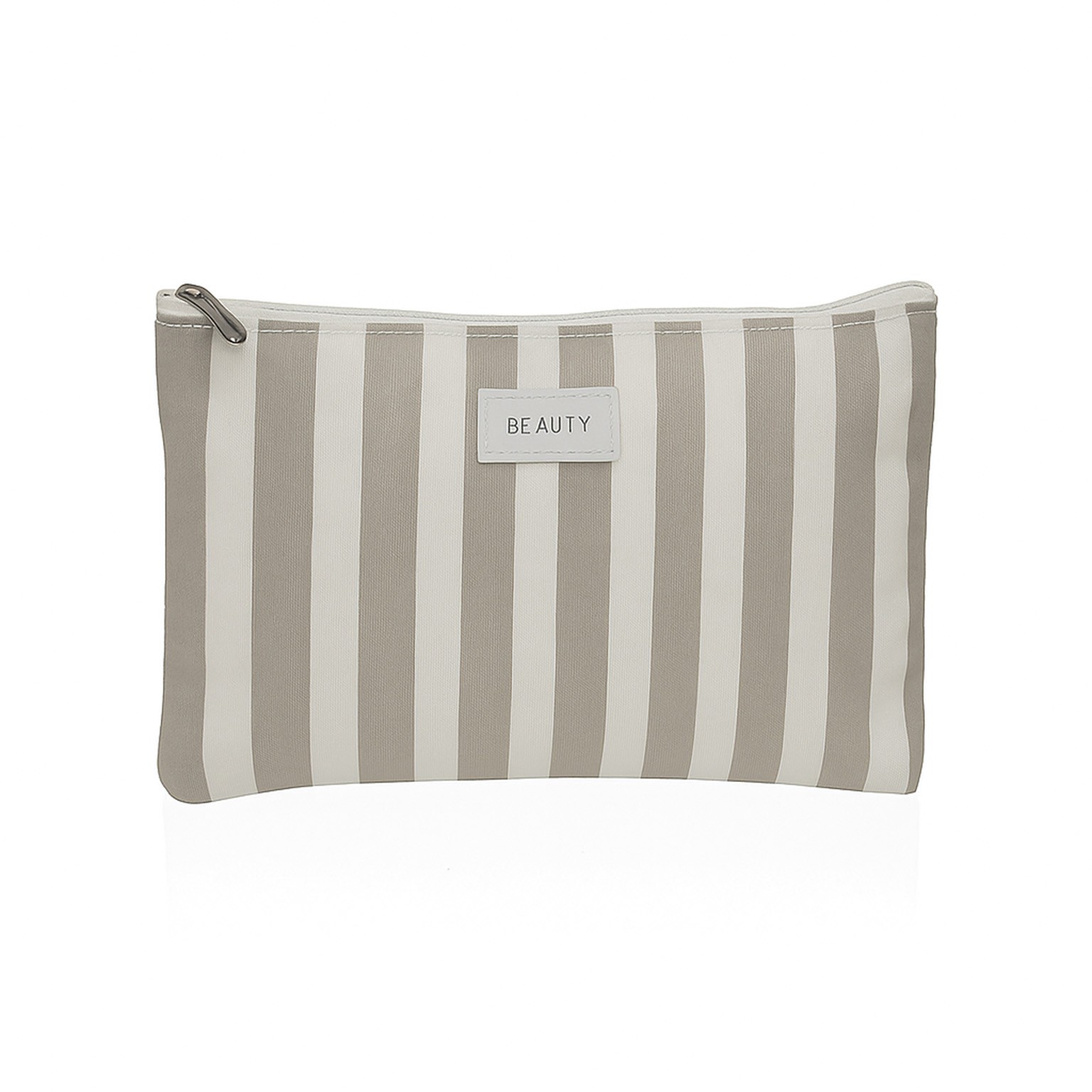 El neceser grande Lintea beige es un práctico organizador para el baño, diseñado en un estilo moderno con un toque náutico gracias a sus detalles en azul.