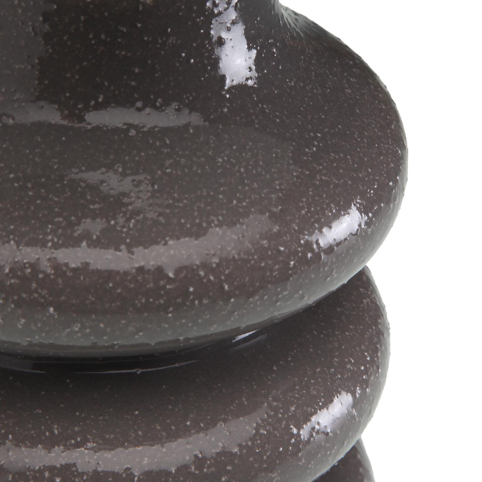 Su base de cerámica en un sofisticado tono gris aporta un toque moderno, mientras que la pantalla textil en blanco suaviza la luz, creando un ambiente acogedor.
