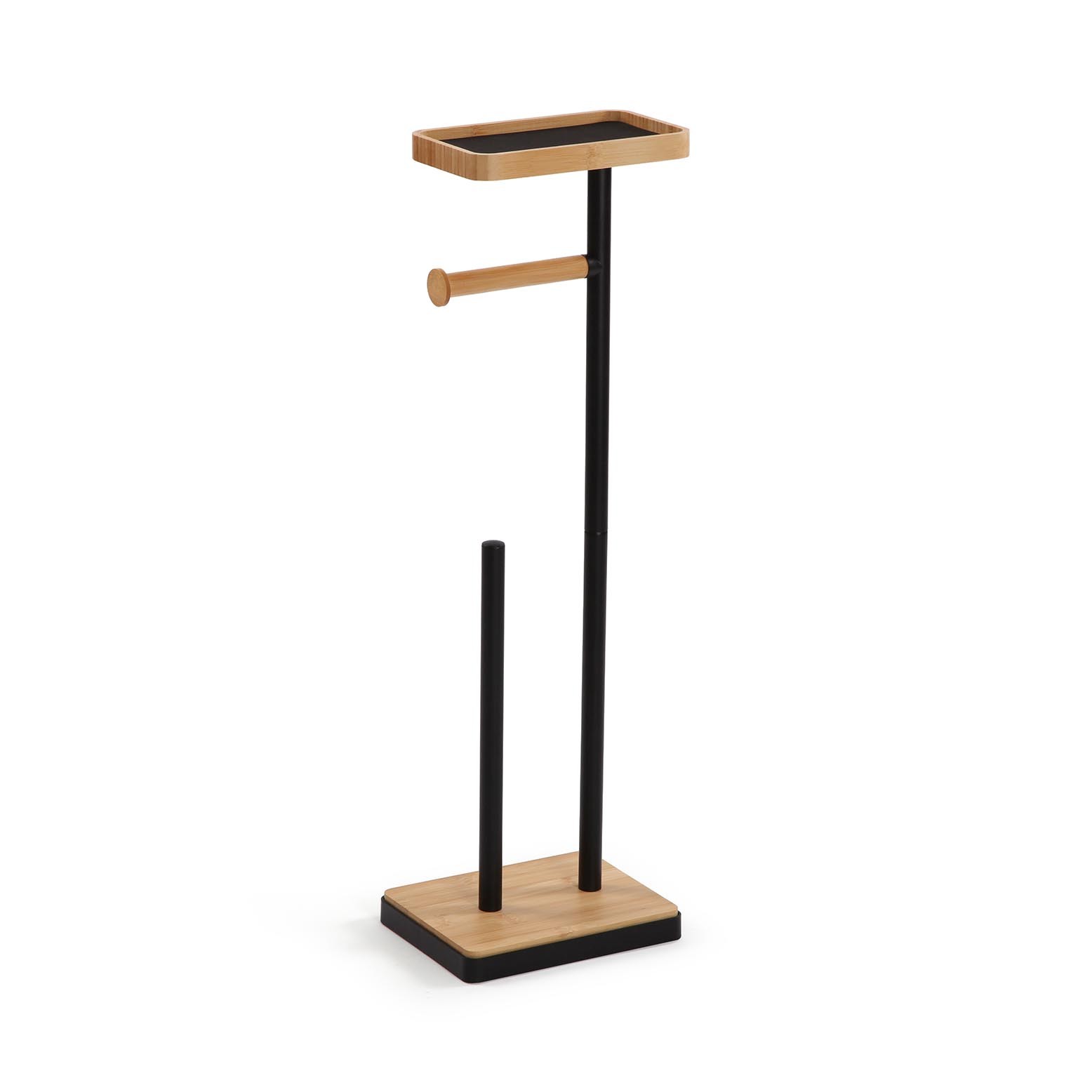 Con una estructura de hierro en color negro y detalles en bambú, este accesorio se integra perfectamente en espacios decorativos contemporáneos.
