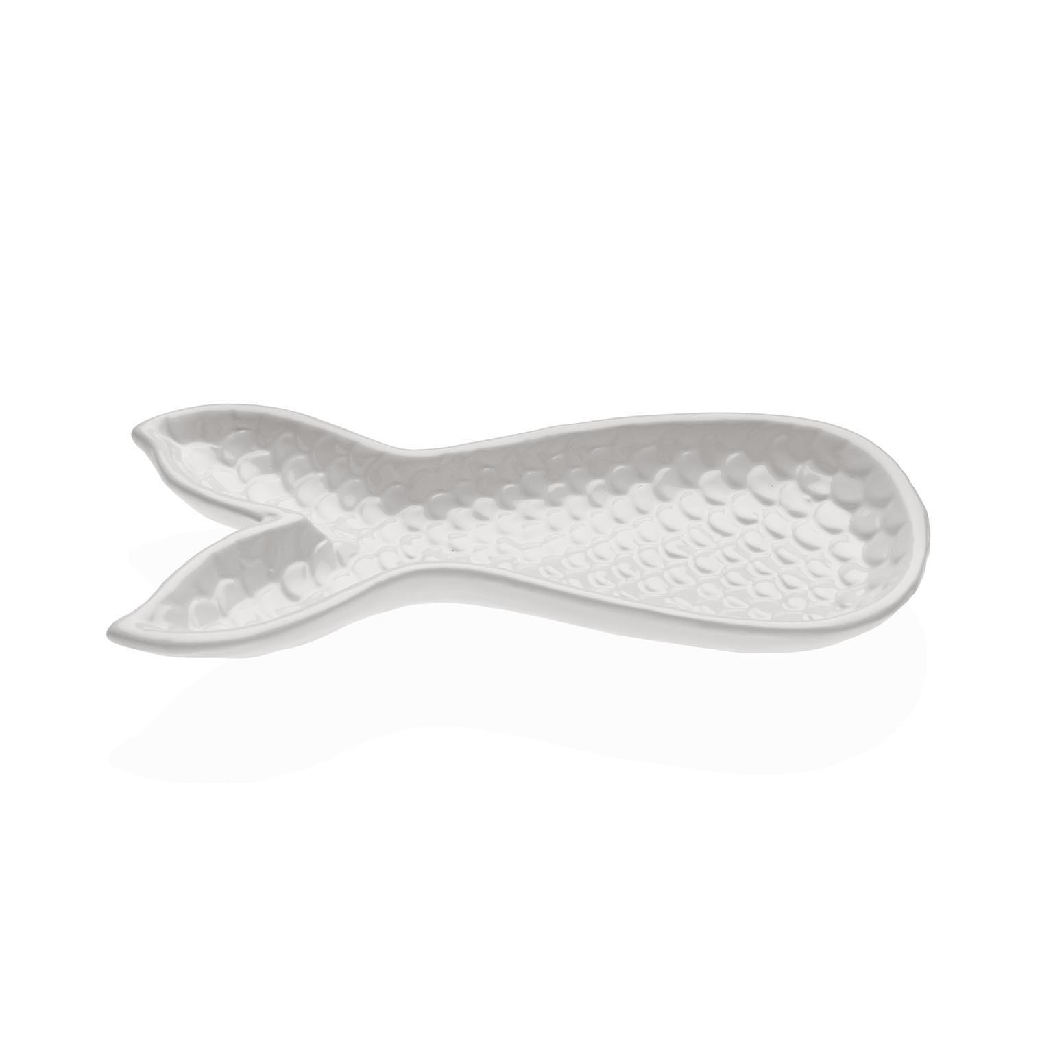 La figura cerámica de pez blanco es un elegante objeto decorativo que aporta un toque moderno a cualquier espacio.