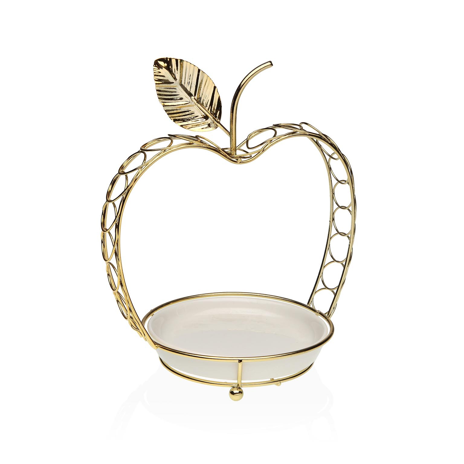 Con una estructura de hierro dorado y una base de cerámica blanca, este accesorio no solo permite organizar joyas y pequeños objetos, sino que también actúa como un elemento decorativo atractivo.