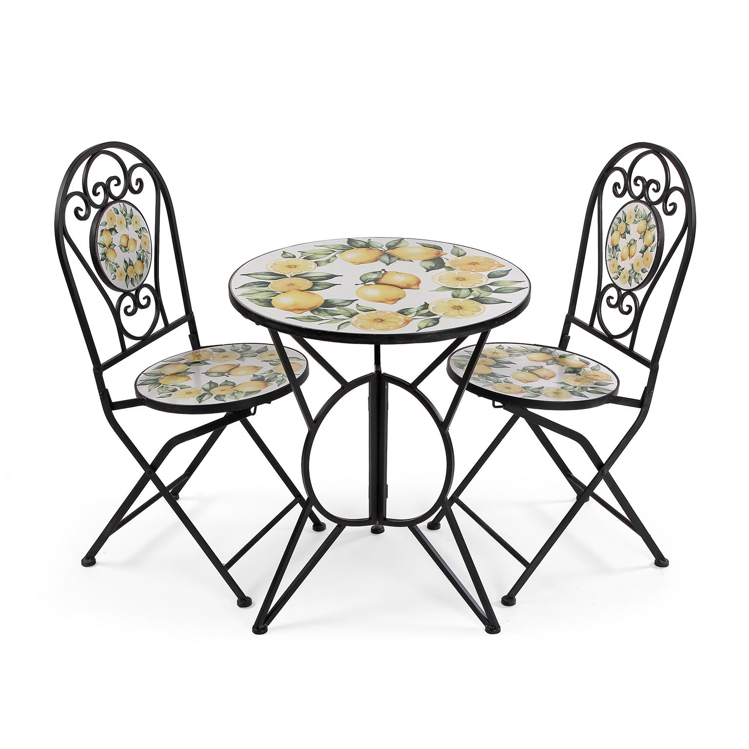Su estructura de metal garantiza durabilidad, mientras que la superficie de cerámica o vidrio aporta un toque fresco y acogedor, evocando el estilo mediterráneo.