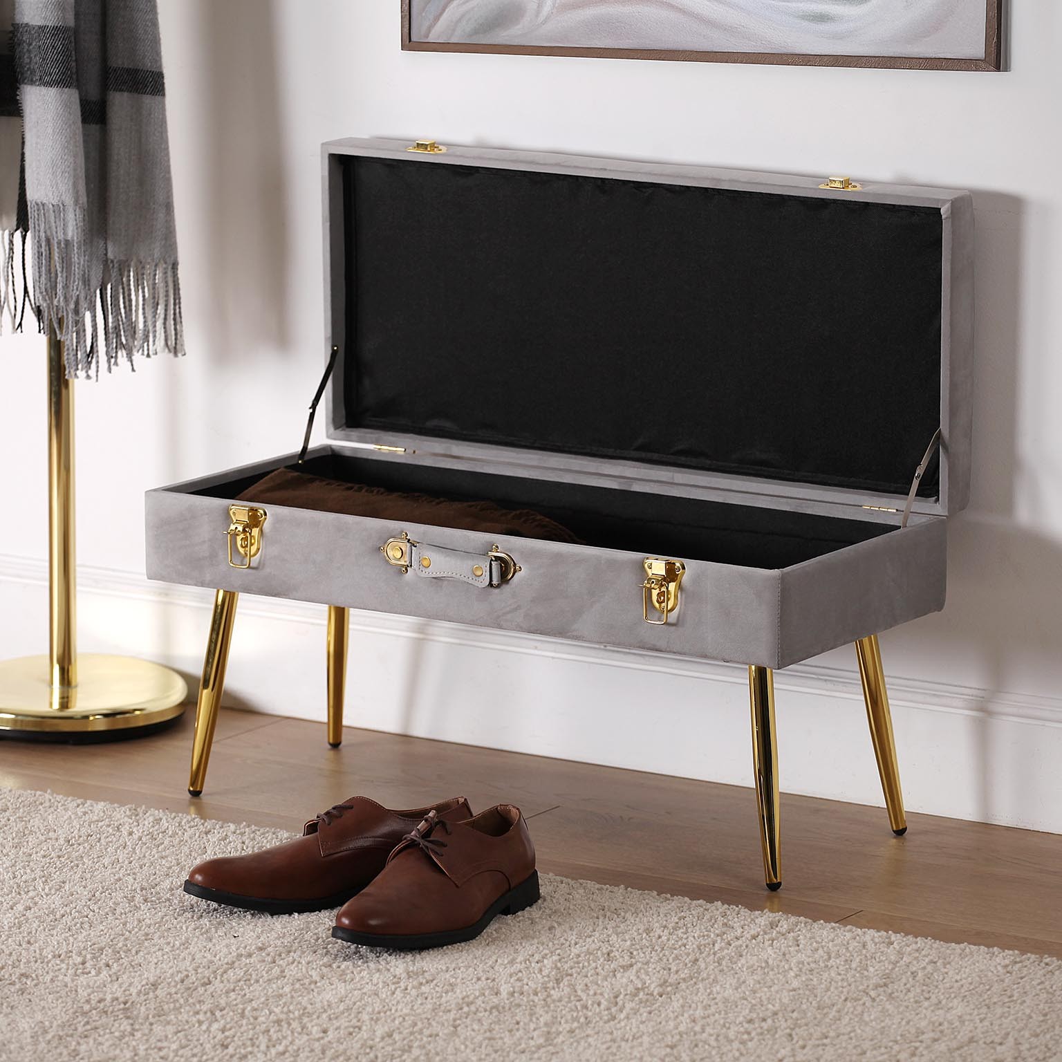 Estructura: MDF, pata de tubo de metal dorado