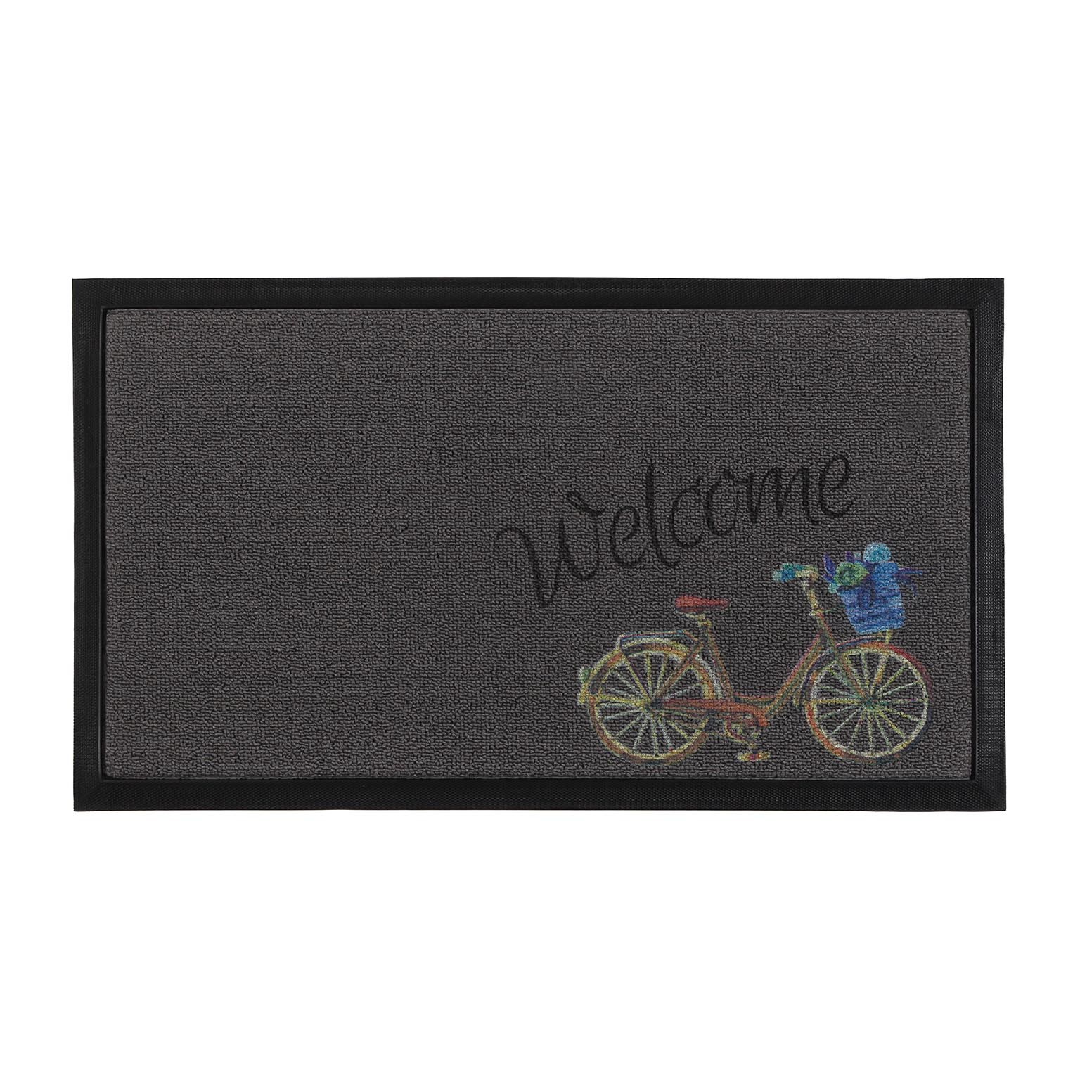El felpudo Welcome Bici es un accesorio decorativo que combina funcionalidad y estilo moderno.