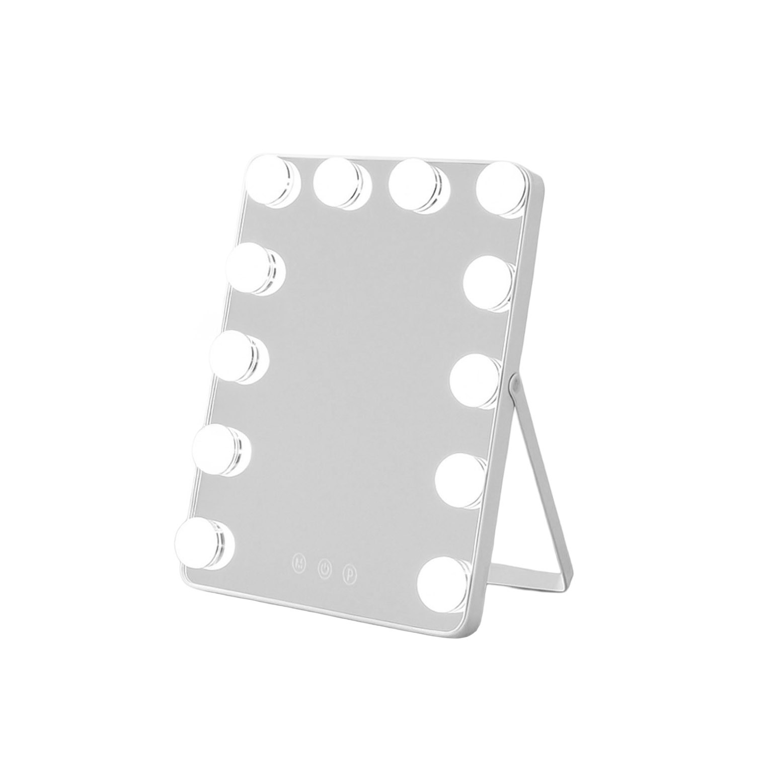 El espejo rectangular con 12 luces LED y soporte es un mueble auxiliar esencial en la subcategoría de espejos.