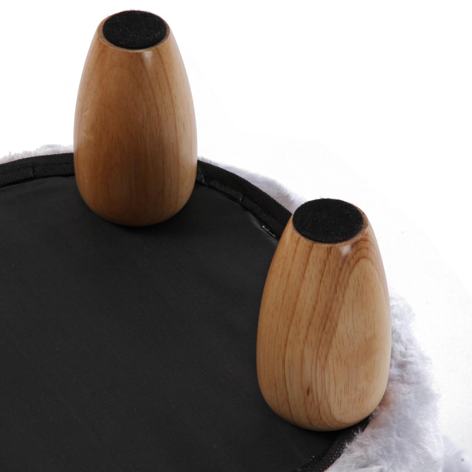 Con una estructura de madera y un recubrimiento de algodón suave que simula lana, este puff ofrece un lugar adicional para sentarse o como reposapiés.