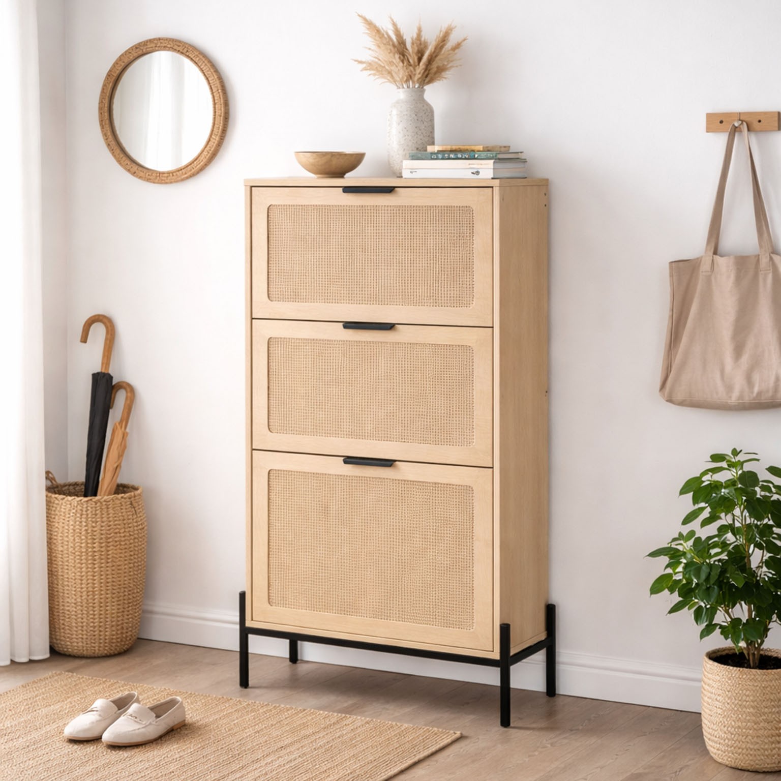 3 DOOR SHOE CABINET WITH STORAGE