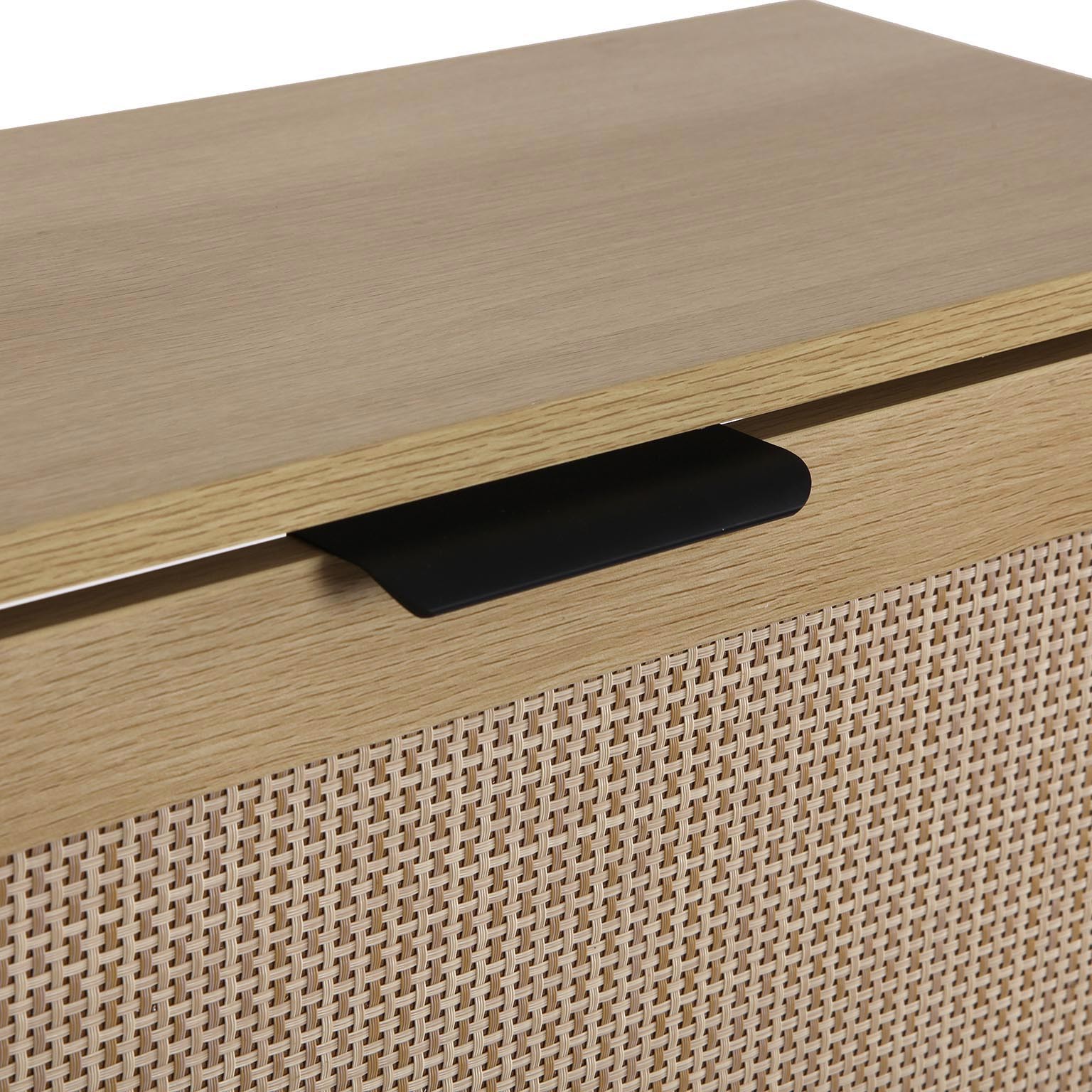 Su estilo moderno y funcional, con tonos claros y detalles en negro, se integra fácilmente en entradas, recibidores o dormitorios, complementando diversos estilos decorativos.