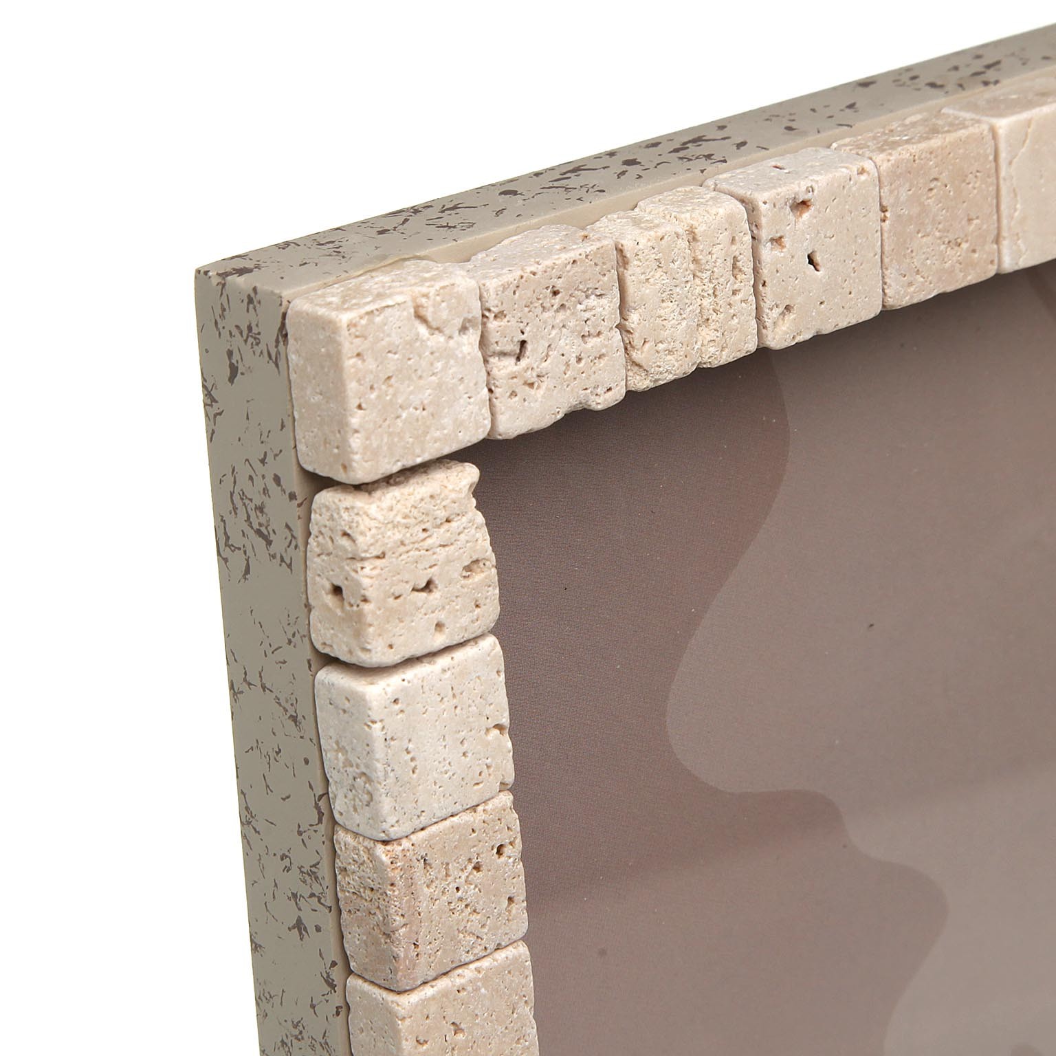 El portafoto de piedra 15x20 es una pieza decorativa que combina la calidez de la madera MDF con la rusticidad de la piedra.