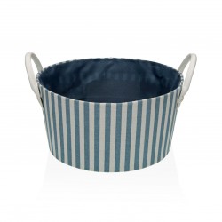 CESTA REDONDA RAYAS AZUL Referencia: 22950027 Medidas: 30x30x15 cm. Material: Algodón Poliester PVC Packaging: Info: 0.208333 kg. Asas de PVC 80% poliéster 20% algodón