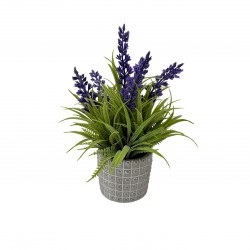 PLANTA LAVANDA CON MACETA Referencia: 20180005 Medidas: 8x8.5x20 cm. Material: Cemento Plástico Packaging: CAJA MARRÓN Info: 0.2 kg. Lavanda plástico en maceta de cemento